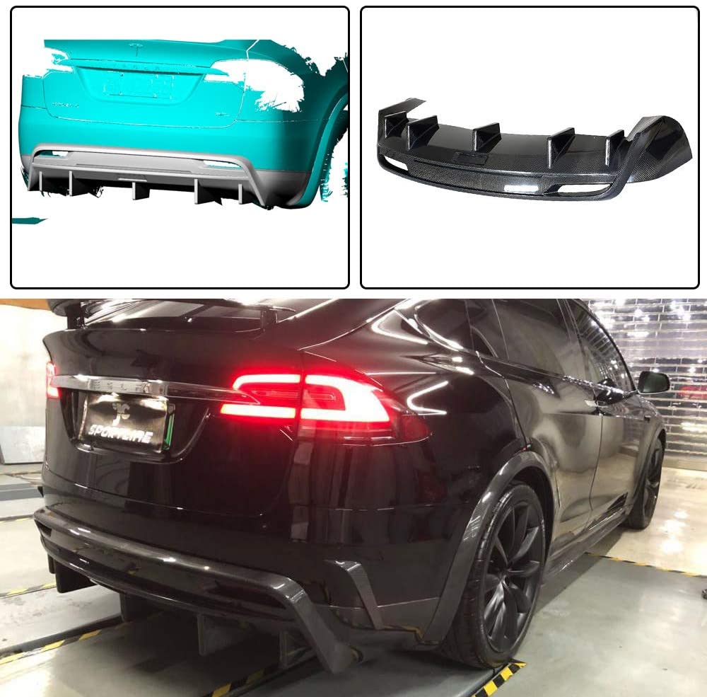 Tesla Model X spoiler adds a deeper and more aggressive look to the rear body kit of your car. It increases the rear downforce and makes it more stable at higher speeds. The Tesla Model X diffuser can enhance the car's sporty performance and make the car more dynamic.It is solid carbon fiber and it mounts securely to the lower part of your rear bumper.