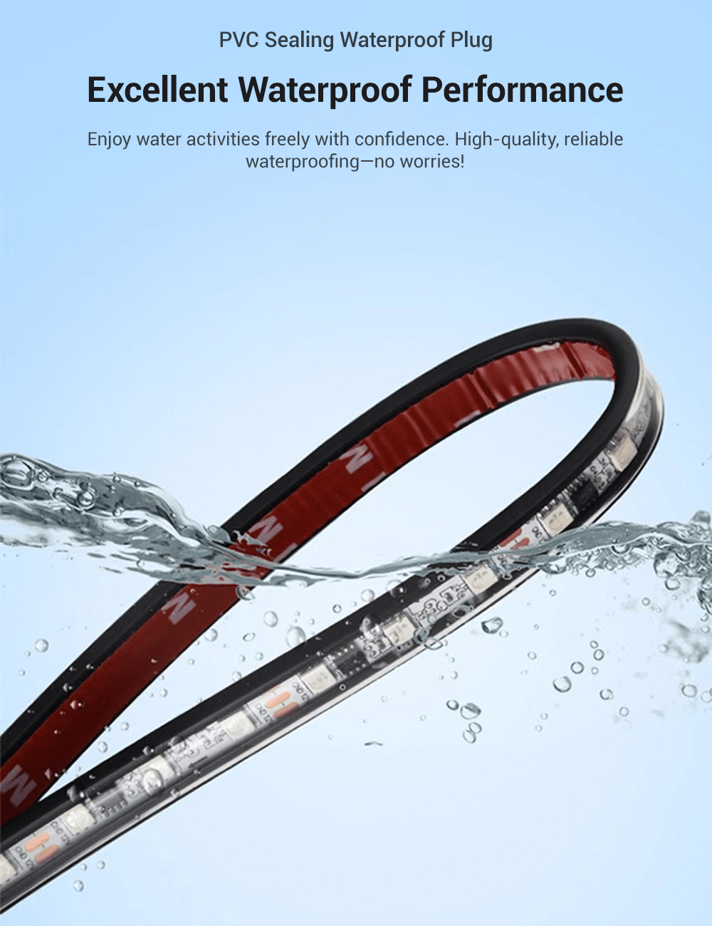 - 【Secure Adhesion】: With powerful adhesive and zip ties, these LED light strips stay securely fastened even during heavy rain, high-speed driving, and rough road conditions. Ensure surfaces are clean before installation to maximize bonding strength.