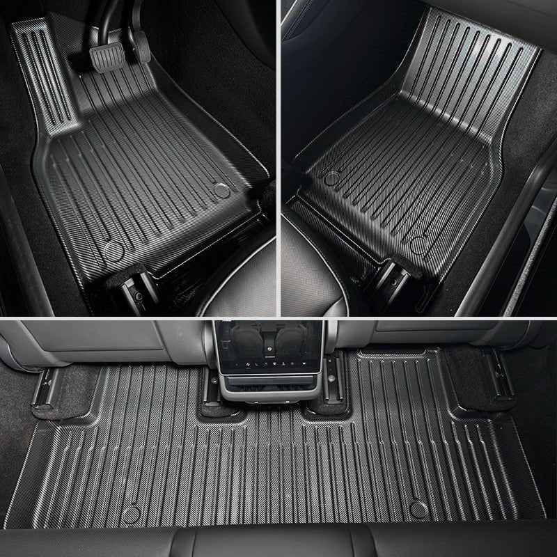Elevate the protection and aesthetics of your New Model Y with our meticulously crafted floor mats. With features like non-interference with pedals. 3D elevated edges to block debris and liquids. and eco-friendly TPE material. they ensure a safe. clean. and healthy interior. Whether facing daily challenges or seasonal weather. these floor mats provide year-round defense. keeping your Tesla's floor pristine and protected.