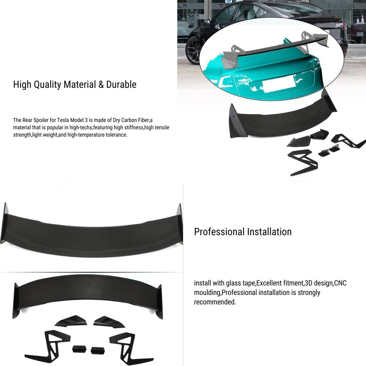 【High Quality Material & Durable】:The Rear Spoiler for Tesla Model 3 is made of Dry Carbon Fiber.a material that is popular in high-techs.featuring high stiffness.high tensile strength.light weight.and high-temperature tolerance.