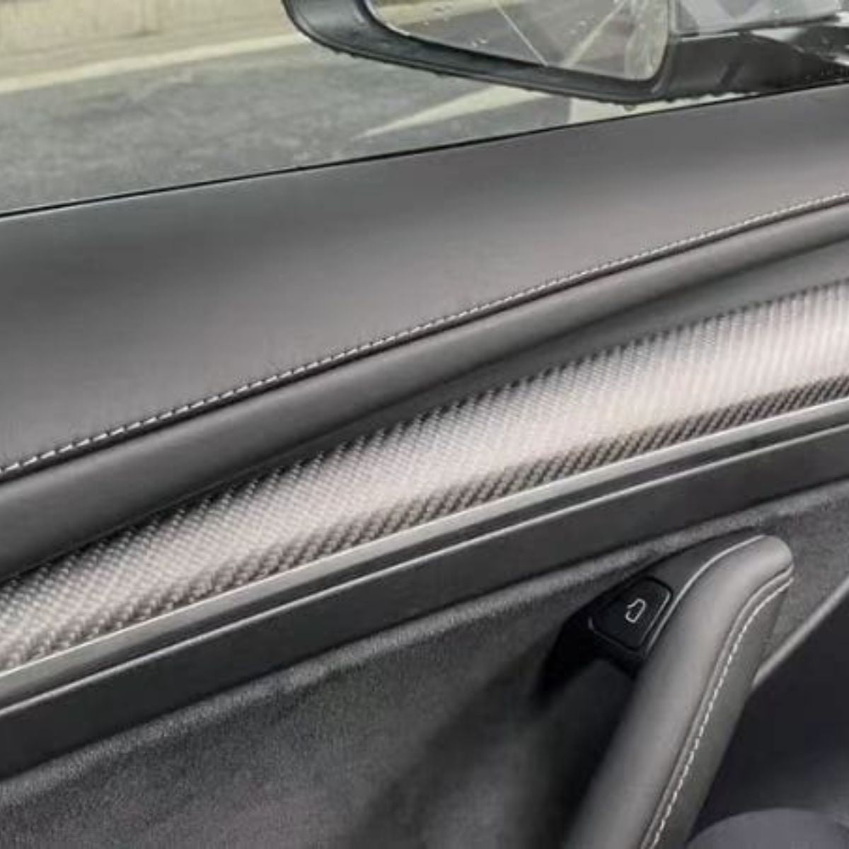 Accentuate your 2021+ Model 3 and Model Y dashboard & door trim with our carbon fiber accent piece. A one of a kind unique look for your Model 3 / Y. These genuine carbon fiber dashboard replacements which have been precision engineered with the exact fit for Model 3 / Y.
