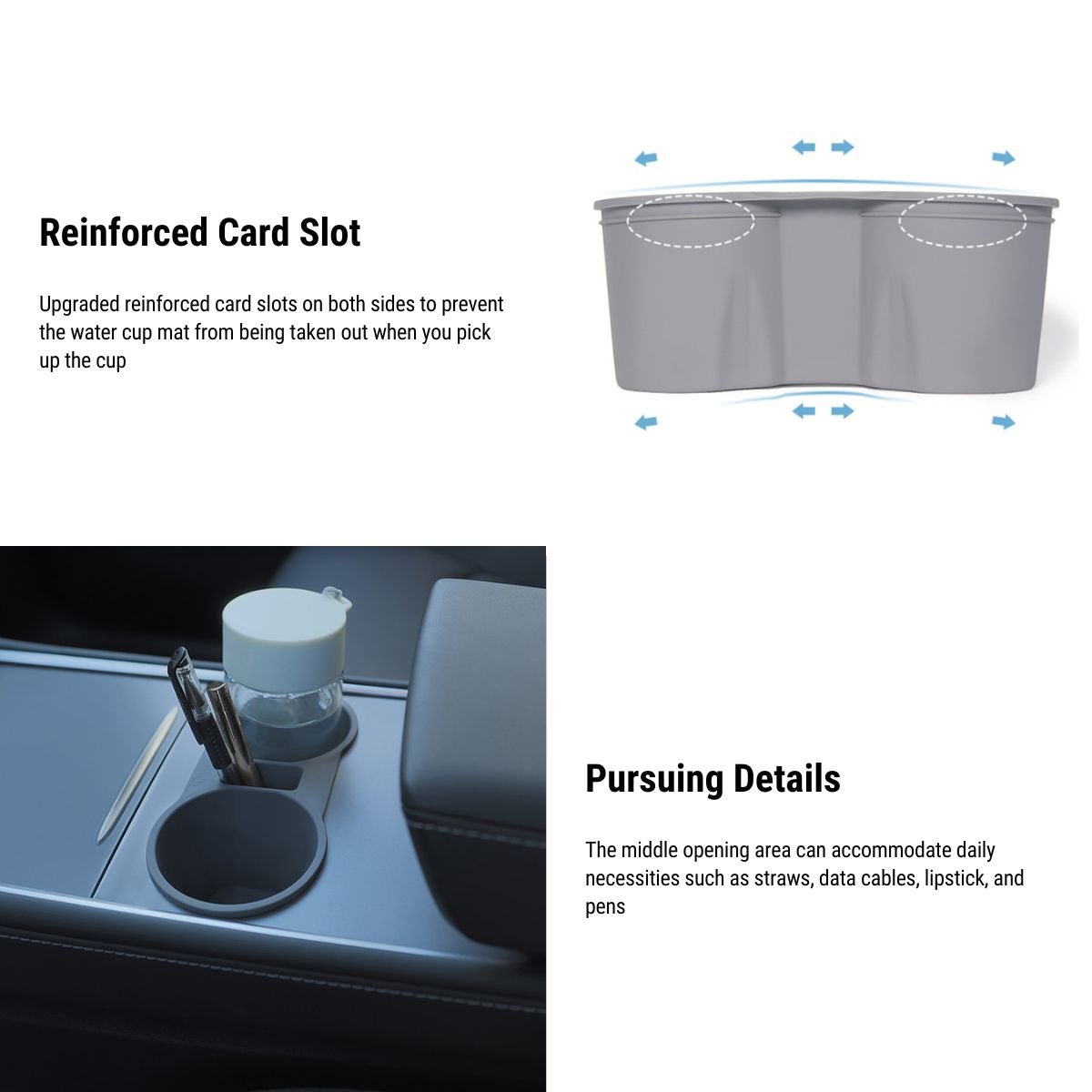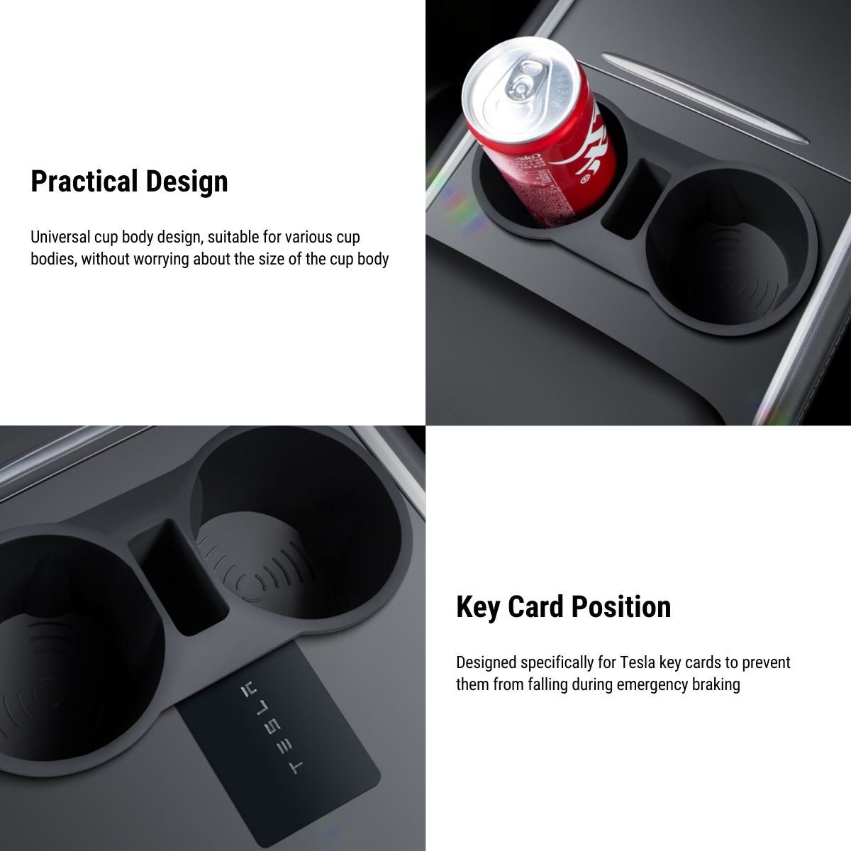 【No Noise】The special design makes the Tesla cup holder insert softly and tightly wrap the cup. giving you a noise-free driving experience.