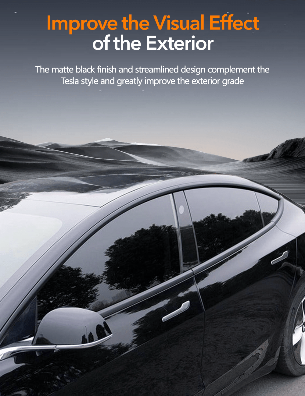 The Tesla Model 3 chrome delete is designed for the Tesla Model 3 to provide a precise fit with the vehicle's window curvature. Made from high-performance PVC. it offers excellent water and weather resistance. ensuring the window trim's beauty and functionality are maintained across different climates. The kit's matte black finish and streamlined design enhance the car's exterior grade. and its easy installation with self-adhesive backing makes it a convenient choice for a sleek upgrade.