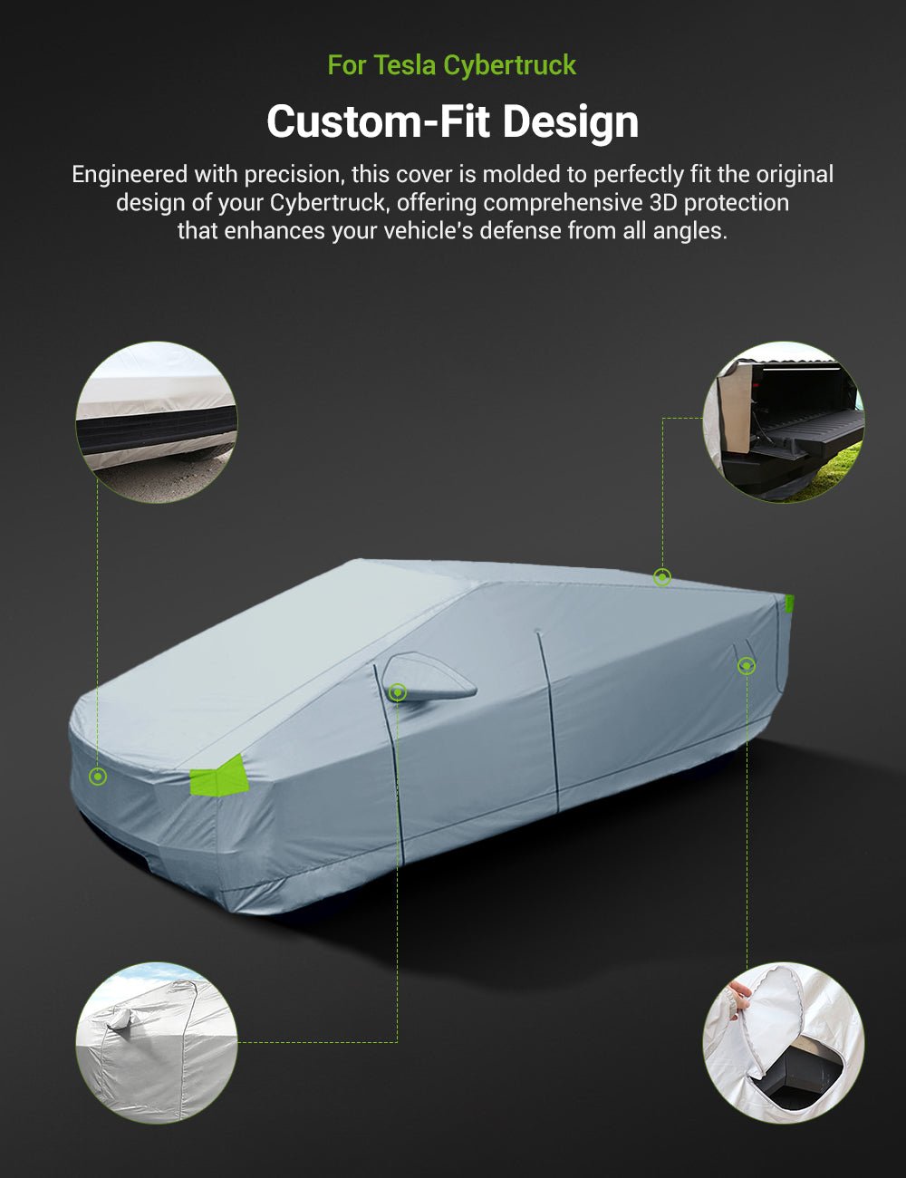- Custom-Fit Protection: Our car cover is tailor-made for the Tesla Cybertruck. offering a waterproof. all-weather shield that keeps your vehicle protected like a mobile garage. regardless of the elements.