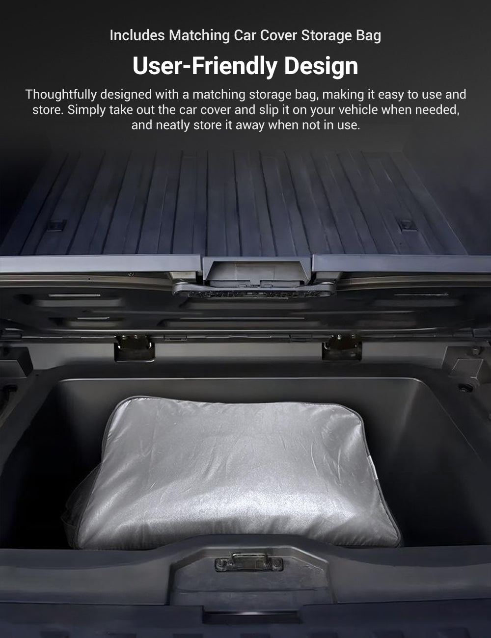 - Complete Package: Your purchase includes a car cover and a storage bag. making it easy to protect and store your cover when not in use. This comprehensive solution ensures your Cybertruck stays in pristine condition.