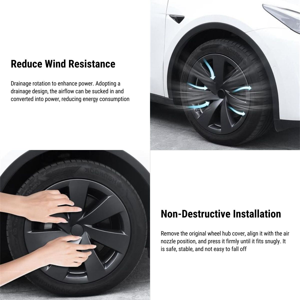 - 【Unique Style】The appearance of the wheel hubs of the original car are very common. the same as that of all the same models. These Tesla Model Y hub caps make your car stand out. The cool appearance increases the overall advanced feeling of the car. making your car more beautiful and unique.