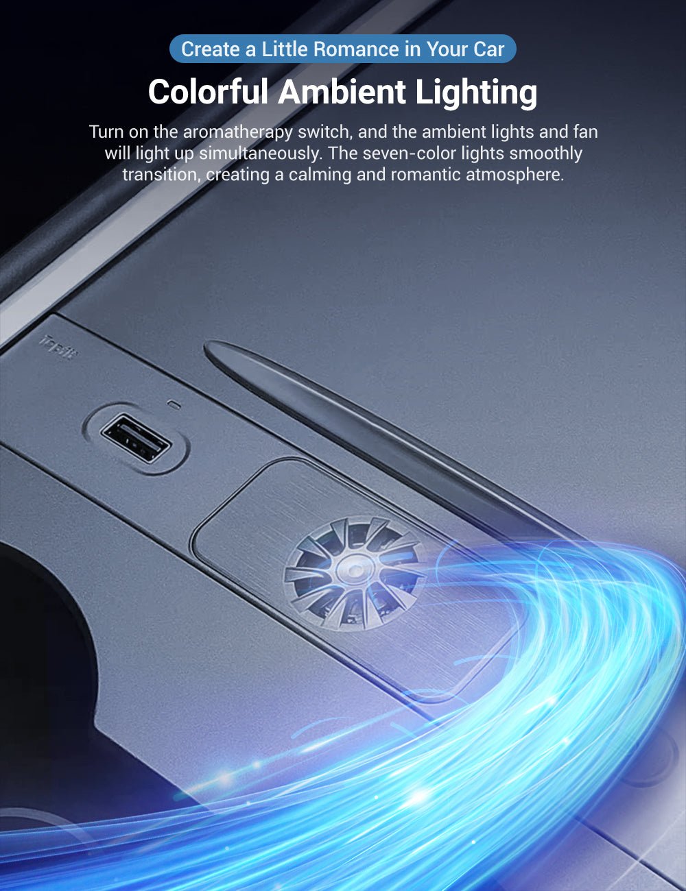 - Fresh Scents for Every Ride: Elevate your driving experience with the built-in mini fan that disperses refreshing aromas throughout your Tesla. This diffuser expansion dock creates a pleasant atmosphere. making every commute a breath of fresh air.