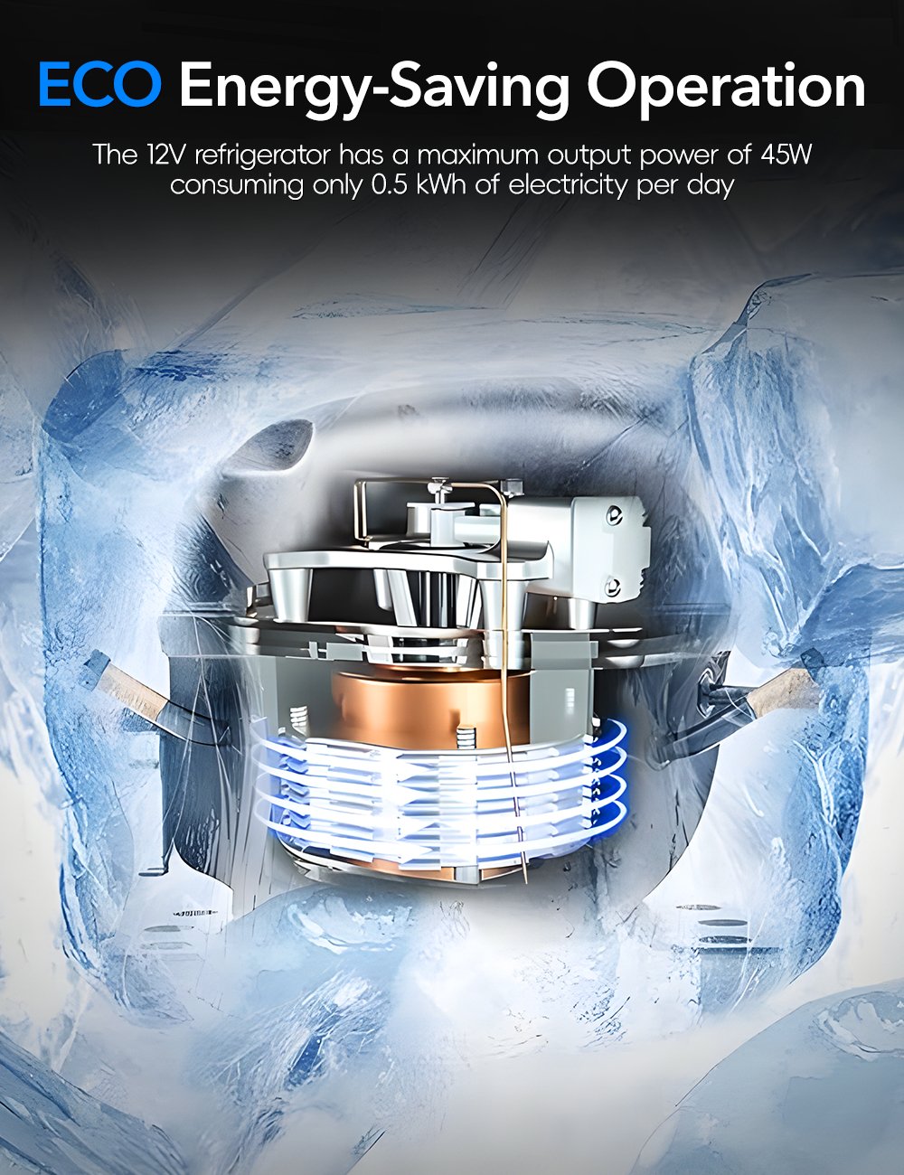 - 【Energy-Saving Technology】: Equipped with an efficient DC inverter compressor. this refrigerator consumes less than 0.5 kWh even when running continuously for 24 hours. having minimal impact on your vehicle's battery life. Enjoy the convenience of frozen food without worrying about power consumption.