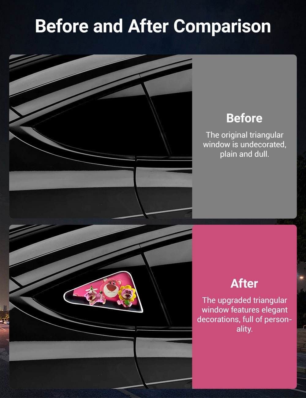 【Compatibility】The APTESL rear side triangle window decoration kit is specially designed for Tesla Model Y 2020+ / Model 3 2017-2023.10 / Model 3 Highland 2024.