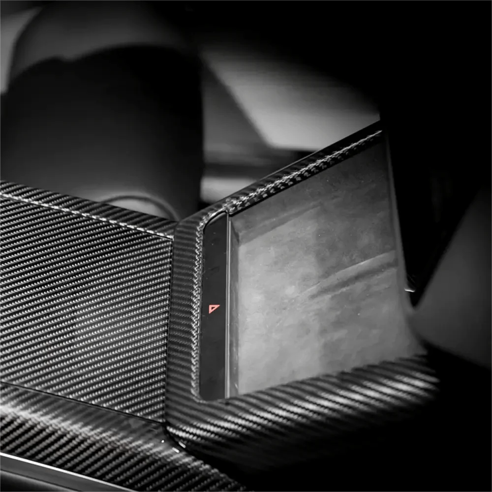 Elevate your Tesla's interior with this stylish. easy-to-install carbon fiber frame that complements your vehicle's sleek design.